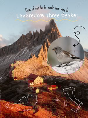 Ein Schneefink, der am 9. Januar in Zettersfeld (Österreich) beringt wurde, wurde am 14. Juli an der Rifugio Lavaredo in den Dolomiten (46.618263, 12.312088) gesichtet – eine Strecke von 43 km!