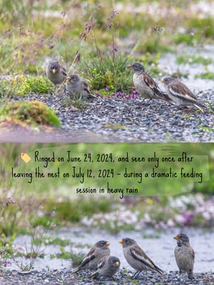 🏷️ Beringt am 24.06.2024 und nach dem Verlassen des Nests nur einmal gesichtet, am 12.07.2024, als ihre Mutter alle Küken bei starkem Regen fütterte 🌧️